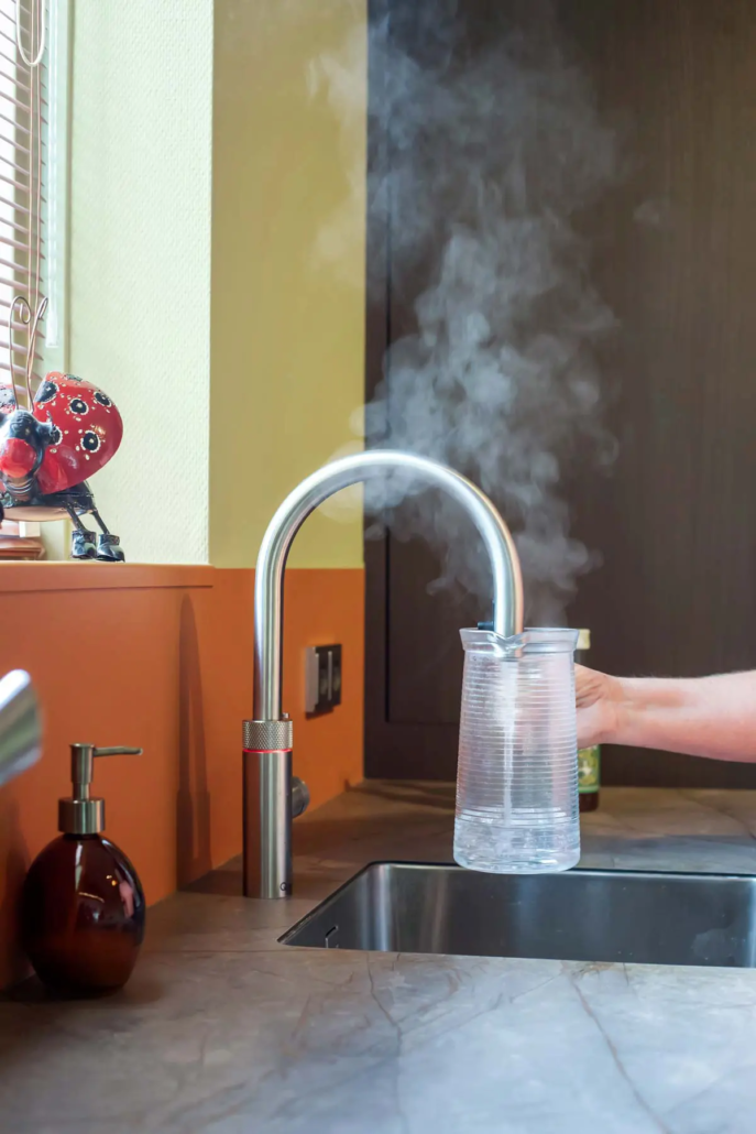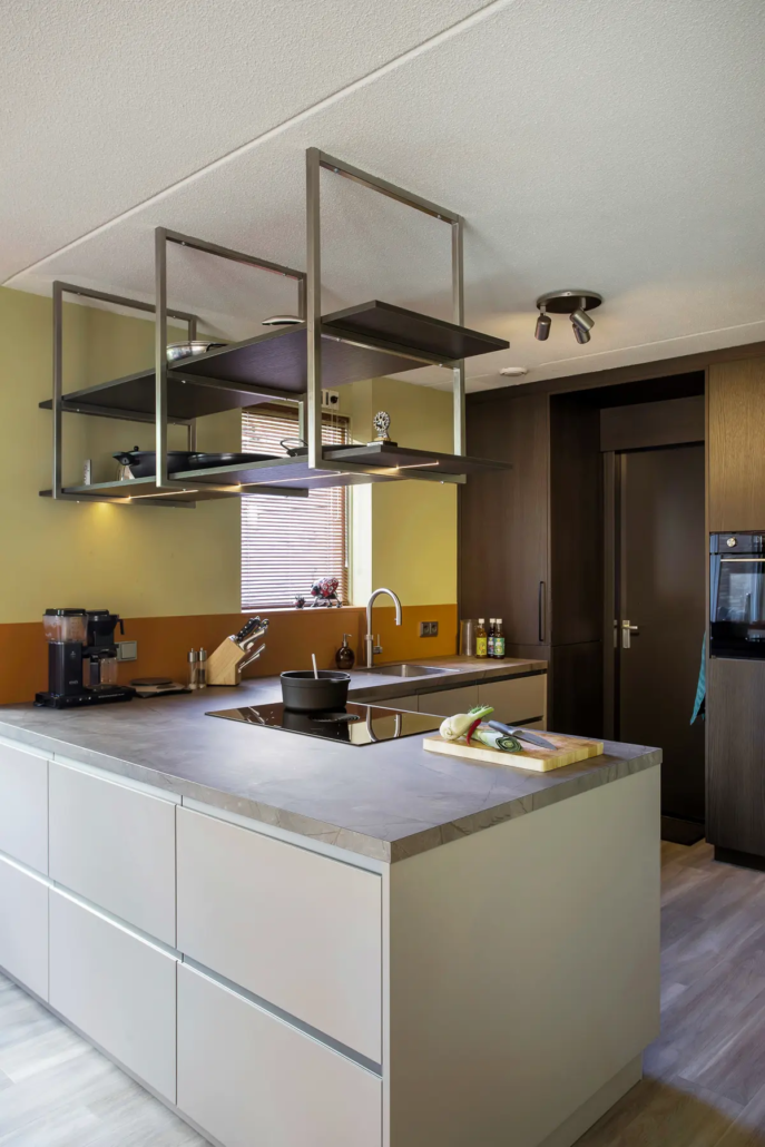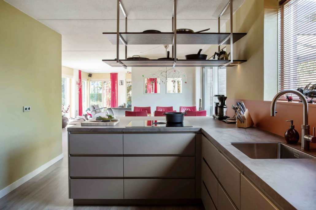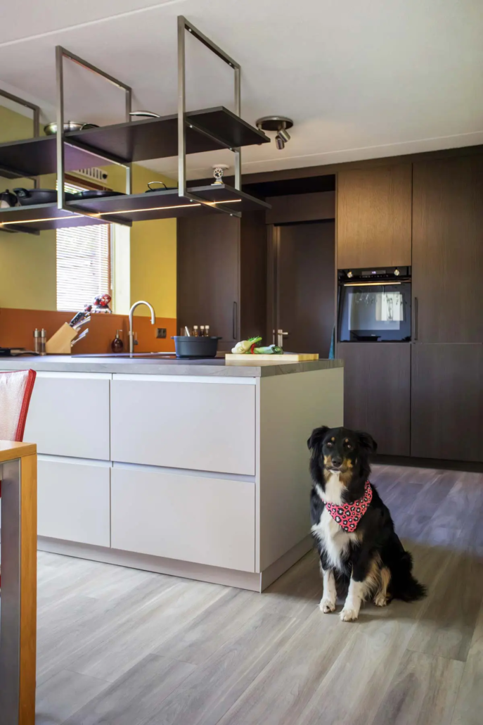 Ook de apparatuur werd zorgvuldig gekozen. “We hadden niet echt voorkeuren, dat is op advies gegaan. Lowie werkt met degelijke merken waar je lang plezier van hebt. Ik wilde graag een oven met een airfryerfunctie, maar dat is uiteindelijk niet gelukt. Nu staat er toch een losse airfryer, maar verder klopt alles. Vooral de Bora kookplaat met geïntegreerde afzuiging werkt perfect. Ik had er zorgen over, maar ik ben er heel tevreden mee. Ook de Quooker vinden we superhandig.”