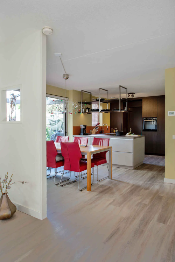 Ook buiten de keuken om liet Irma zich inspireren. “We hebben ramen tot op de grond geplaatst aan de voorkant, dat idee kwam van Lowie. Ook de kleuren die hij voor de keuken bedacht, hebben we doorgetrokken naar de woonkamer. Dat geeft echt rust en een mooi geheel.”