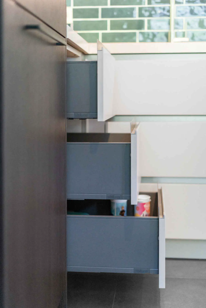 “Op advies van Lowie zit er onder de oven een lade waar je al het materiaal voor de oven in kwijt kunt. De platen, bakpapier, handschoenen – alles zit bij elkaar. Het zijn dit soort handigheidjes en ervaring van Lowie die het verschil maken. Ik kan het iedereen aanraden. Het is zó handig en doordacht!”