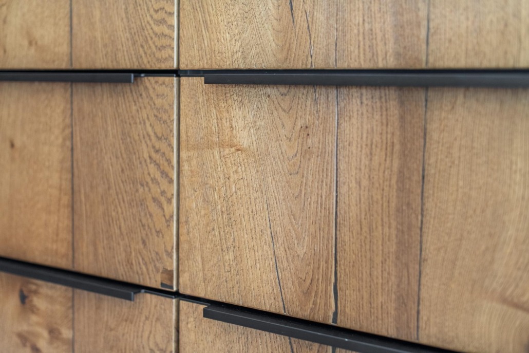 Jenneke kookt graag en maakt daarbij graag gebruik van uitstekende keukenapparatuur, zoals een combioven, bakoven en een inductiekookplaat met geïntegreerde afzuiging. De keuken is praktisch en goed ingedeeld. ‘Omdat er geen ontsierende afzuigkap is, kan ik tijdens het koken fijn naar buiten kijken. En dat is misschien wel het belangrijkste van deze keuken: ik heb telkens het gevoel dat ik buiten ben en dat is voor mij als buitenmens heel belangrijk. Dus de keuken past supergoed bij ons interieur én bij onze persoonlijkheid. Kortom, de keuken is in alle opzichten geslaagd!’